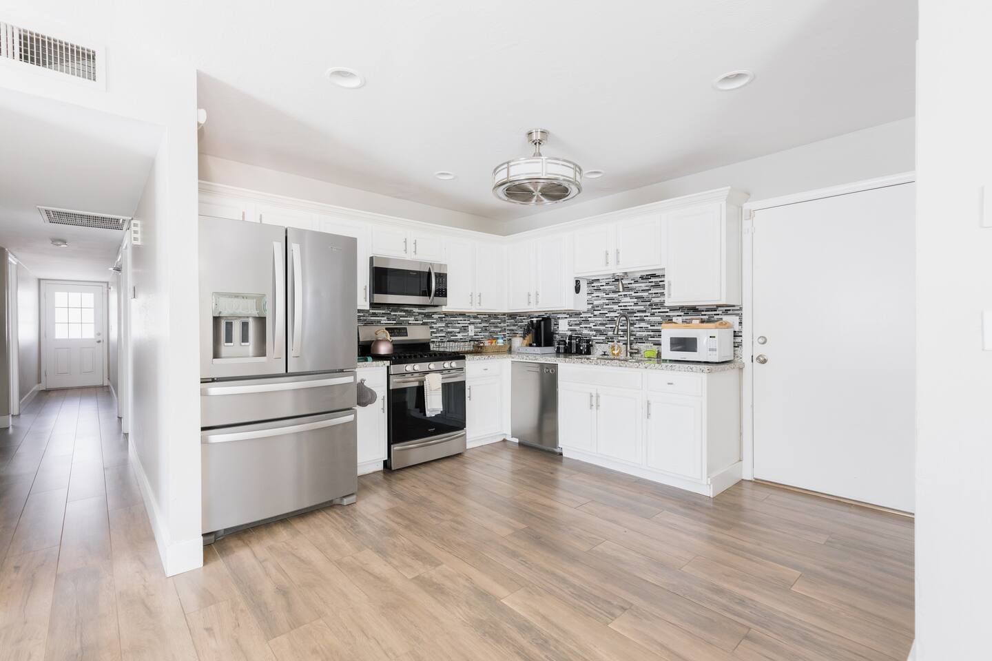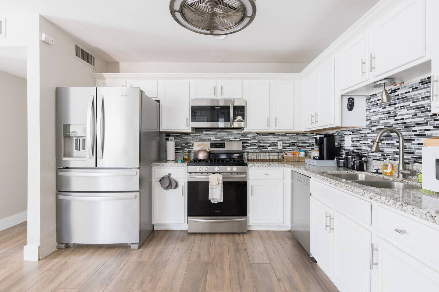 This beautiful, spacious, modern home boasts many amenities, including: → Fully stocked kitchen → Ample Parking → Smart TV Streaming → Onsite washer + dryer → Self check-In - SmartLock *Important: Though our smart TVs have streaming apps installed (Netflix, Disney+, Amazon Prime), guests would need to log in with their own credentials. Please remember to logout of the apps at checkout. NOTE: There is a casita in the backyard that is occupied by a monthly tenant. Please do not disturb this tenant. There is one shared (adjoining) wall, but no interior access between the units — no connecting door.