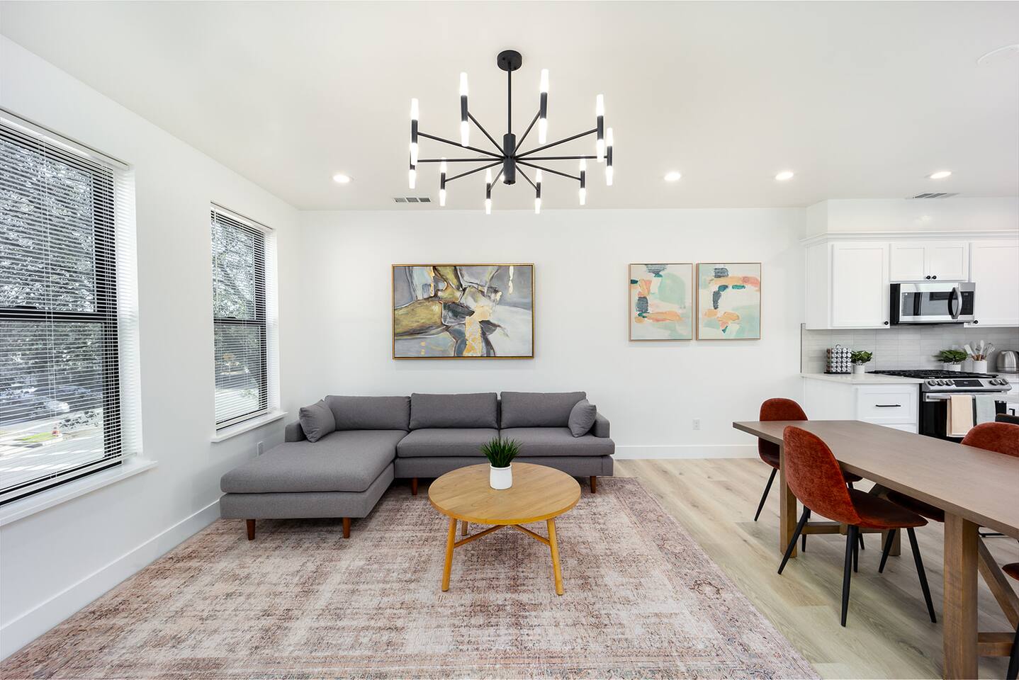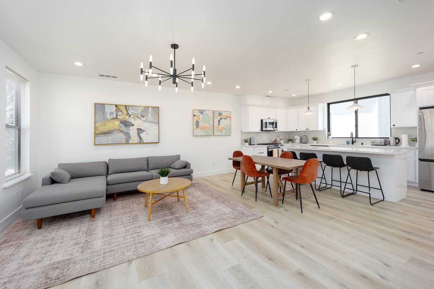 Welcome to your haven in the heart of the city! This brand new designer masterpiece boasts a stylish and comfortable living space in Downtown's most desirable neighborhood. Unwind in Sophistication: ♦ Step into a modern oasis featuring brand new furniture throughout. ♦ Relax in the king-sized master bedroom complete with a flat-screen TV for a touch of in-room entertainment. ♦ Two additional bedrooms offer queen-sized beds, perfect for comfortable sleeping arrangements for all guests. Live Like a Local: ♦ Whip up delicious meals in our spacious and fully equipped kitchen. ♦ Enjoy the convenience of having in-unit laundry machines, so you can pack light and travel fresh. This centrally-located gem puts you at the heart of the action: ♦ Minutes away from essential conveniences like Target and Starbucks. ♦ Enjoy a cup of joe at the renowned Tower Cafe, or explore the vibrant scene of local restaurants, bars, and clubs. ♦ Catch a thrilling game at the iconic Golden 1 Arena, or delve into history at the majestic State Capitol. Whether you're a business traveler seeking a stylish retreat, a group of friends exploring the city's energy, or a family looking for a comfortable home base, this designer condo caters to your needs. Experience the perfect blend of luxury, convenience, and central location. Book your stay today! **IMPORTANT NOTE** We use white high quality sheets for our units. Please be sure not to get them stained, as we may have to charge $25 for extra cleaning (if the stains get removed) or the entire amount of the cost to replace the sheets if the stains cannot be removed. Thank you!