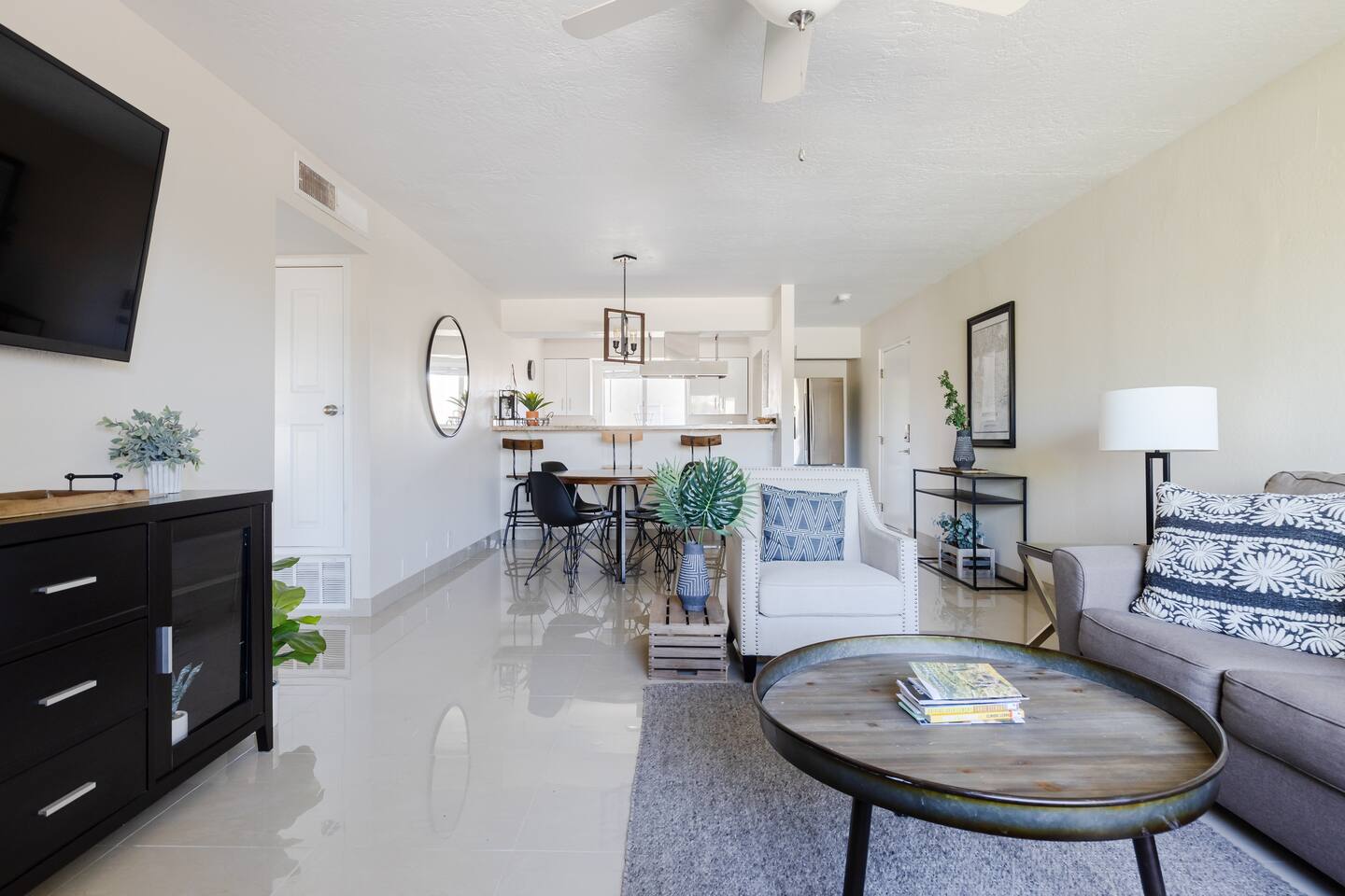 Enjoy sole access to this sunny 2BR condo in South Scottsdale, and private patio. Did we miss something? We're here to help. Send a message or call us during your stay and someone will assist you right away. *Important: Though our smart TVs have streaming apps installed (Netflix, Disney+, Amazon Prime), guests would need to log in with their own credentials. Please remember to logout of the apps at checkout. Per regulations, guests are not allowed to use the mailboxes on site. You may have Amazon packages delivered to the door and also use nearby post office boxes for mail. We would not be liable for any lost packages.