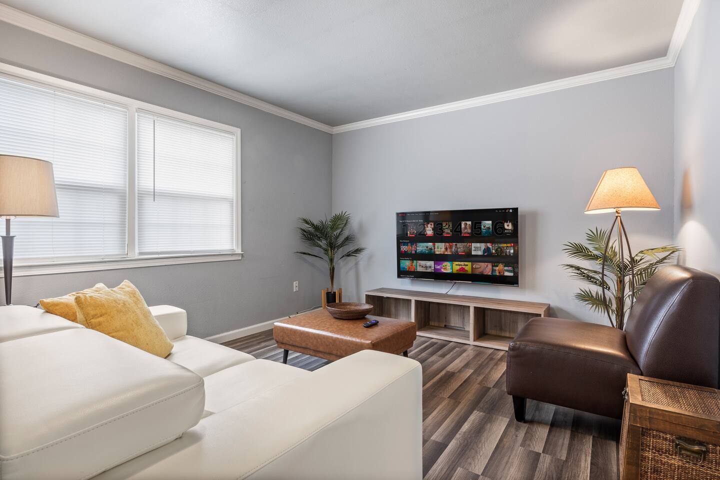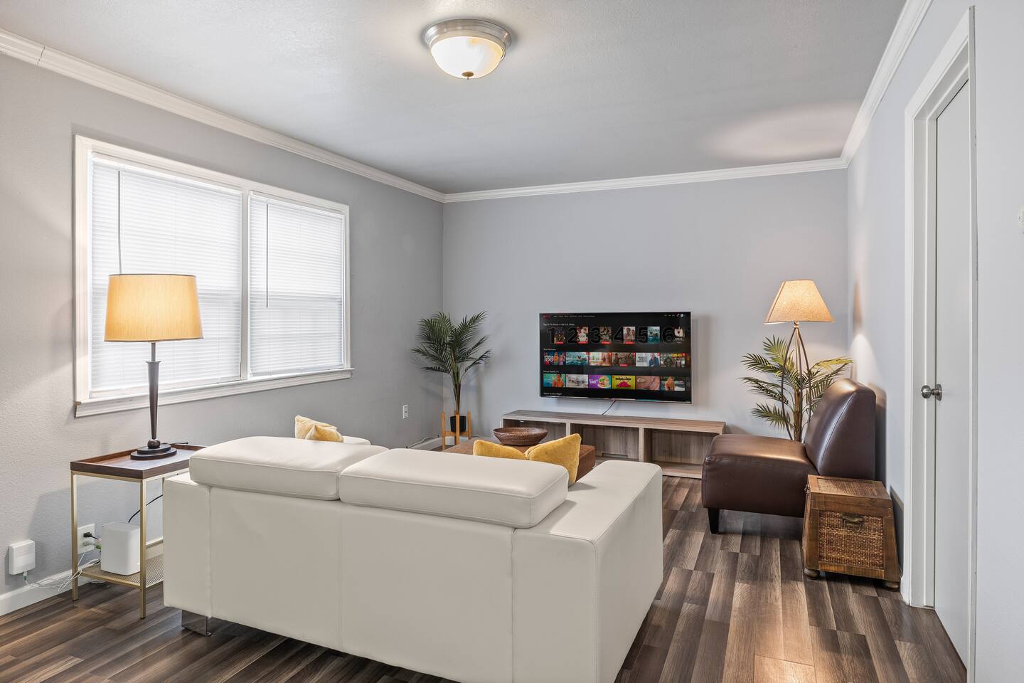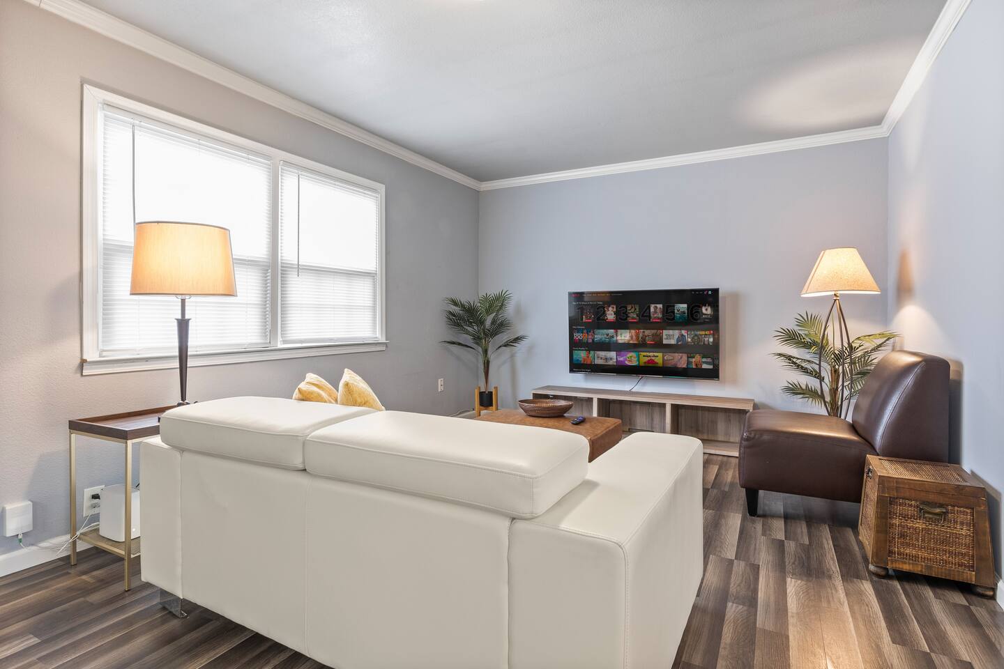 Experience Sacramento in style with our modern 2 BR apartment - your perfect home away from home! From the fully stocked kitchen to the Smart TV with your favorite streaming apps, we've got you covered. Enjoy free street parking and laundry, a dedicated work area, and stainless steel appliances.