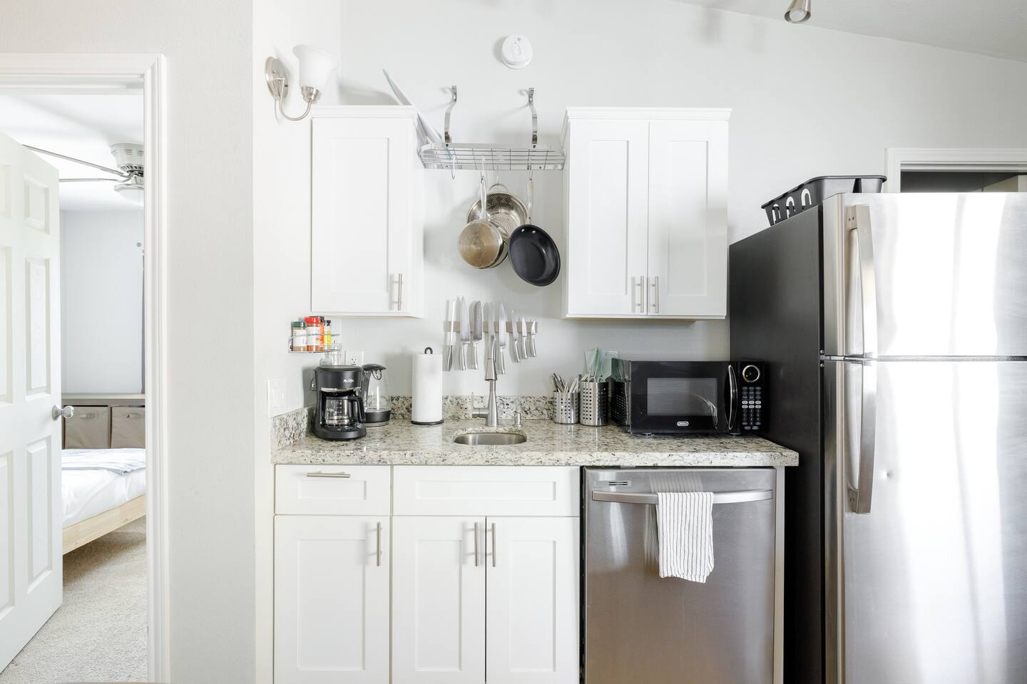 The unit has 2 Queen-sized beds, suitable for up to 4 guests. Our kitchen is equipped with cooking utensils, a single burner electric cooktop, and other kitchen appliances that you may need! *Important: Though our smart TVs have streaming apps installed (Netflix, Disney+, Amazon Prime), guests would need to log in with their own credentials. Please remember to logout of the apps at checkout.