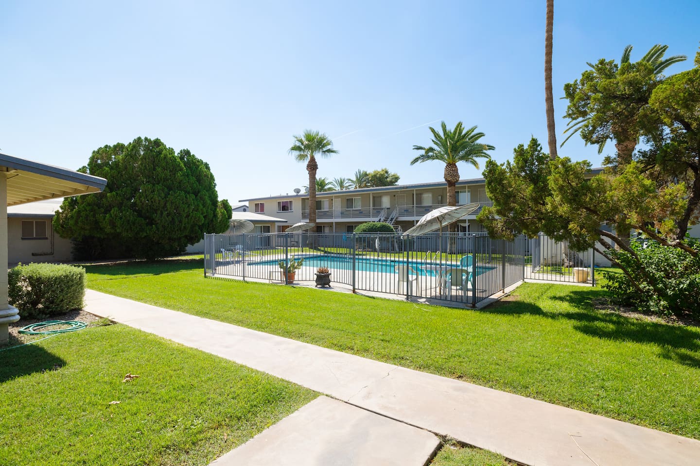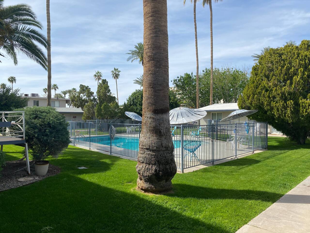 Quiet, mid-century modern neighborhood nestled in the heart of Old Town Scottsdale near the Entertainment District. This complex is within walking distance to Old Town Scottsdale and very close to the well-known Valley Ho Hotel. There is a cool little neighborhood market located at 3703 N 69th St Unit 1 which is located on the corner of 69th street and East 2nd Street. It is across from the unit and they have most of the items needed for short stays. There is also a Circle K at the end of 69th street and Indian School.