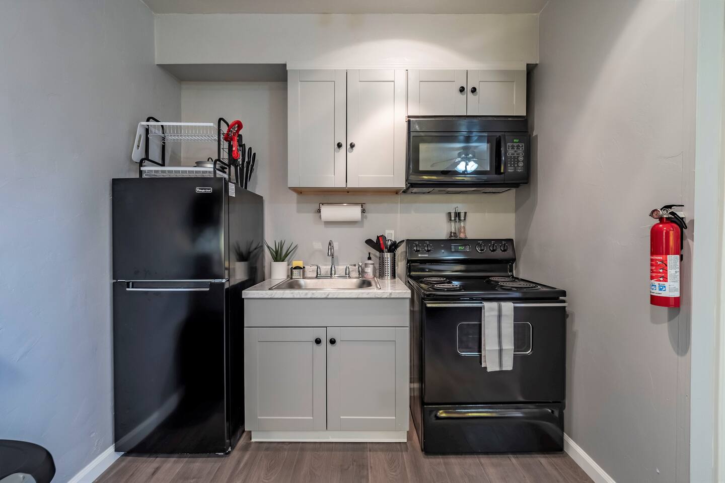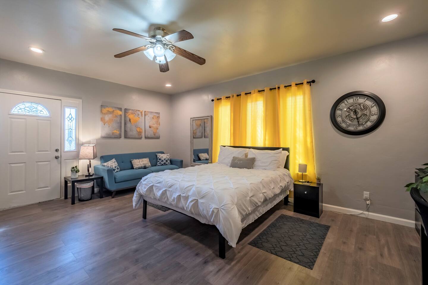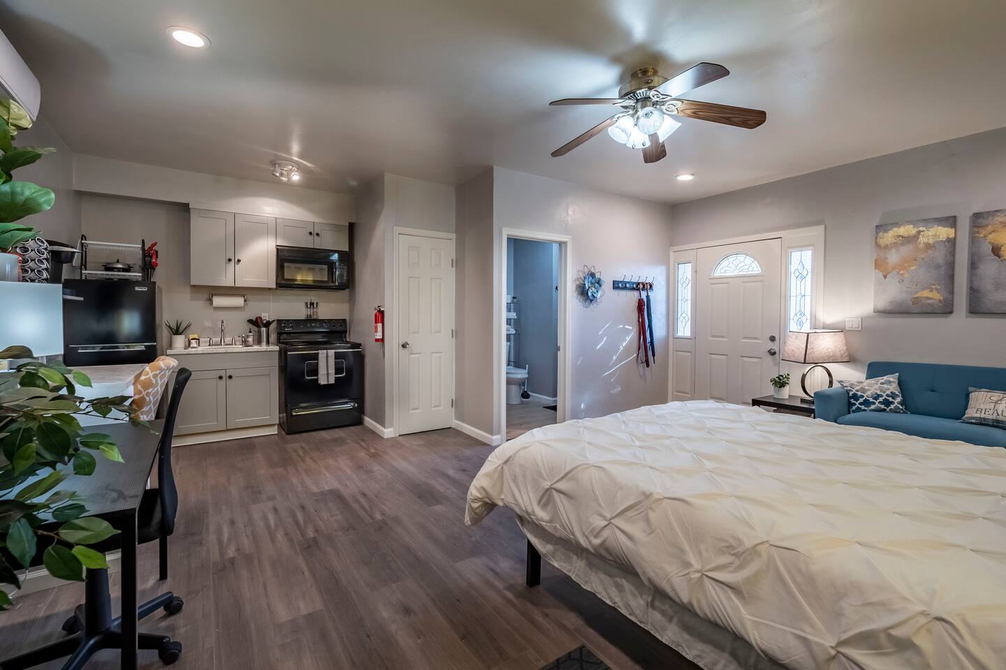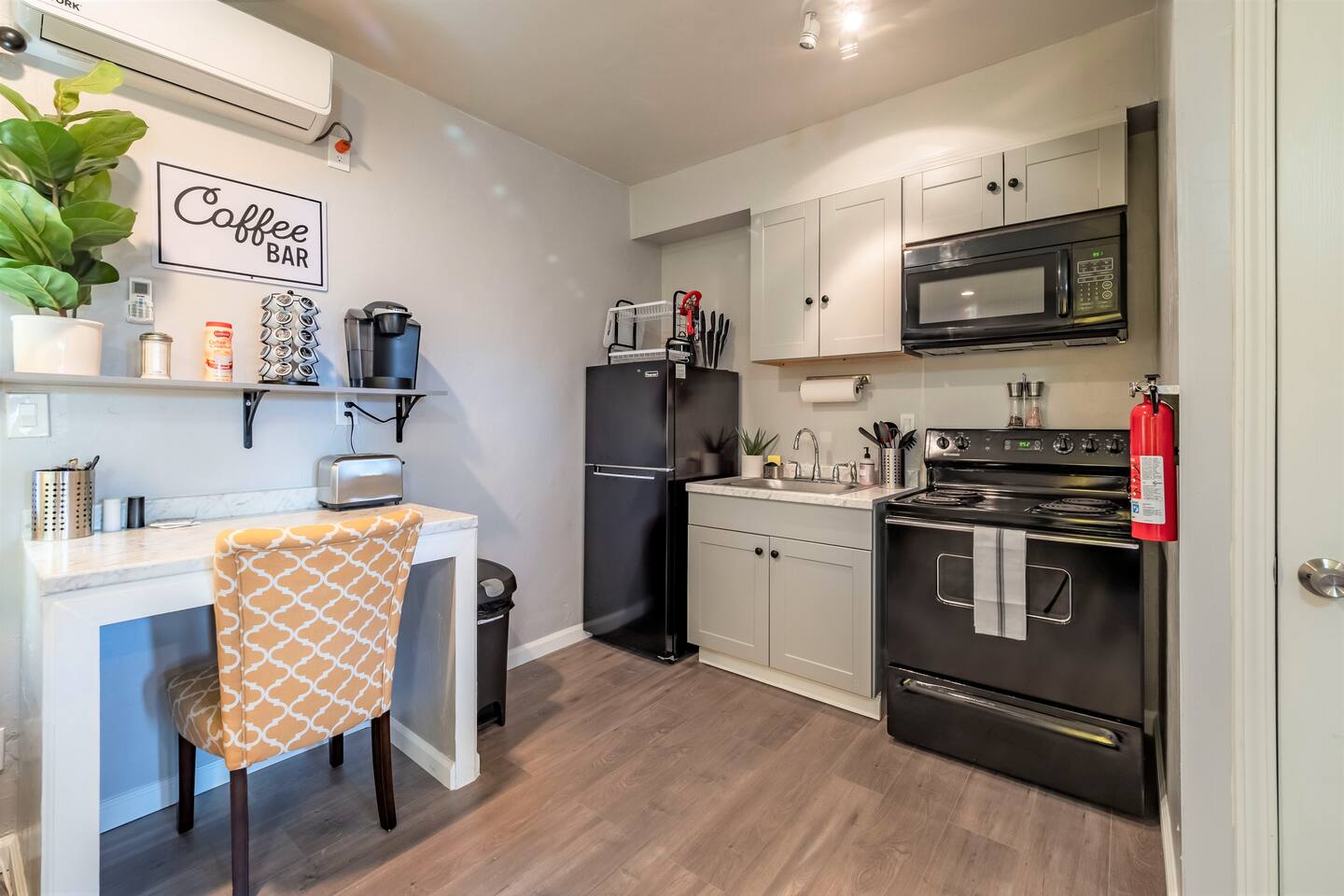 Please note that we have a NoiseAware device inside the home to monitor noise levels. The NoiseAware device is not intended for recording, and please be assured that we cannot hear any audio from it. This unit is 455 sqf, ideal for individuals or couples. Parking strictly in the driveway. NO STREET PARKING 6pm - 6am or you may be towed. Please kindly check additional reminders for the property and note that these are for STRICT IMPLEMENTATION. • No pets. • No smoking, vaping, or use of marijuana at anytime anywhere on the property including apartment complex. The apartment complex has No Smoking rules as well. Because other tenants are smoking does not grant permission. We are providing housing through a corporate lease, being 100% compliant is imperative. No smoking, no cigarette butts littering, no rubbing out burning cigarette tips, and no flicking cigarette ashes anywhere on the property, including the apartment complex. Please smoke on the street. • No parties, events, birthdays, bachelor or bachelorette stays, get-togethers, hangouts and the like. • Check-in is anytime after 4 PM and check-out by 11 AM. • Self-check-in with a smart lock. • Do not disrespect your neighbors. • Do not wash dishes in the bathroom sink. • Do not burn candles, incense, or any other open flames. • We do not allow personal mail deliveries to our property. We can only allow Amazon package deliveries. • Lock the door AT ALL TIMES. We want you and your things to be safe. • Do not have more guests than stated in your reservation and do not have any unapproved visitors. • No loud music or disturbances, especially noise past 10 pm. • Please note that excessive internet data usage will result in a fee of $50 if it goes over the limits of our plan. • If you open it, close it; if you borrow it, return it; if you turn it on, turn it off; if you break it, fix it; if you use it, look after it; if you make a mess, clean it up; and if you move it, replace it. NOTE: We are not responsible or liable for any accidents, injuries, or illnesses that occur while on the premises. We are not responsible for the loss of personal belongings or valuables during your stay. We cannot be responsible for any items left behind. • FEES: A lost remote control (TV, fan, or air conditioner) will result in a $100 charge. • FEES: A $250 fine will be imposed for any type of smoking. • FEES: Unapproved Late Check-Out fees: Every hour after 11 a.m. is an additional $50. • FEES: Additional guests not listed in your reservation will be charged $50 per night per person. Please be completely transparent in your reservation so that you can avoid this issue. • FEES: A $250 fee will be assessed for blocking or covering entrance surveillance cameras. •Toiletries provided in the bathroom are intended for initial use only. These items are meant to serve as a startup kit to get you settled in upon your arrival. For longer stays or if you require additional supplies, we kindly ask that you make the necessary arrangements to purchase these items as needed.