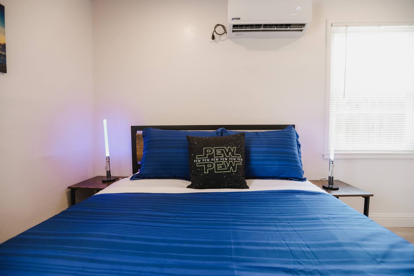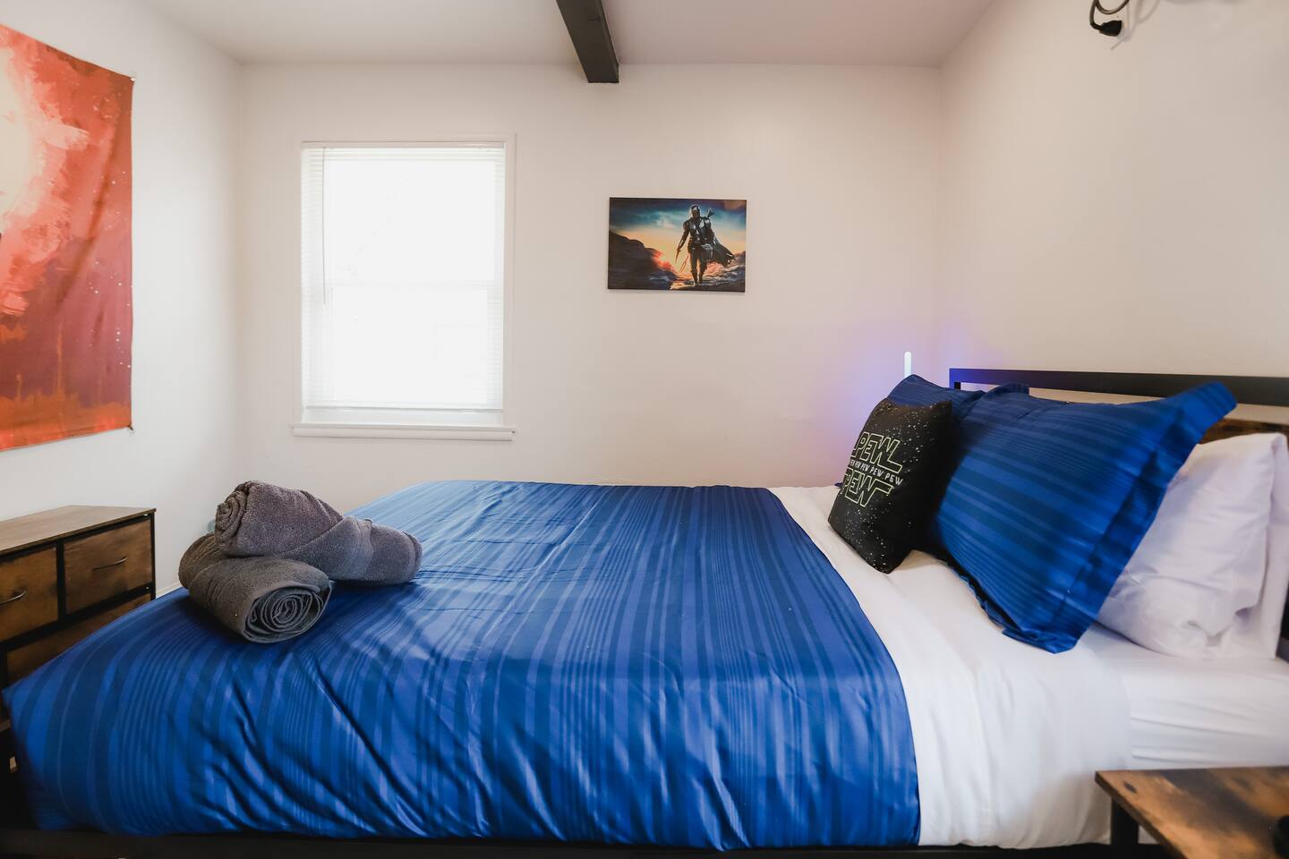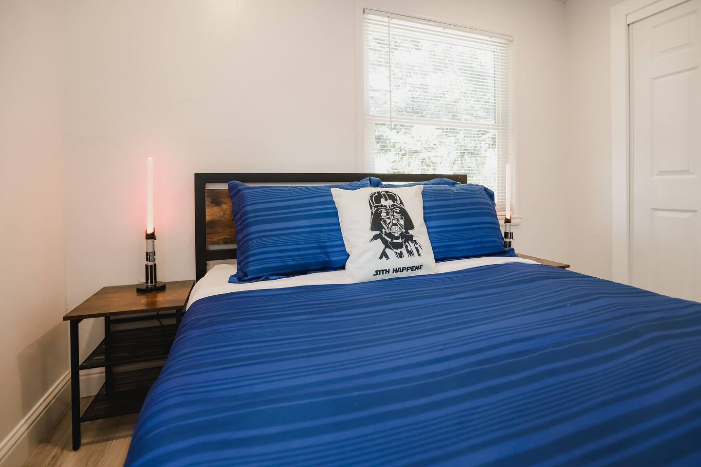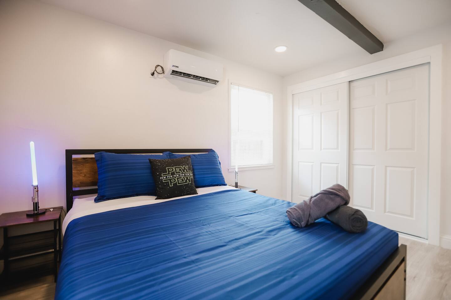 Our modern, updated space has all the comforts of home while you are away. This 2x1 is decked out with Starwars - themed decor throughout... May the force be with you! *Important: Though our smart TVs have streaming apps installed (Netflix, Disney+, Amazon Prime), guests would need to log in with their own credentials. Please remember to logout of the apps at checkout. Book with us and get: - Professionally cleaned home - Virtual Concierge 24/7