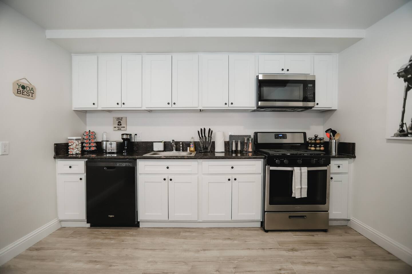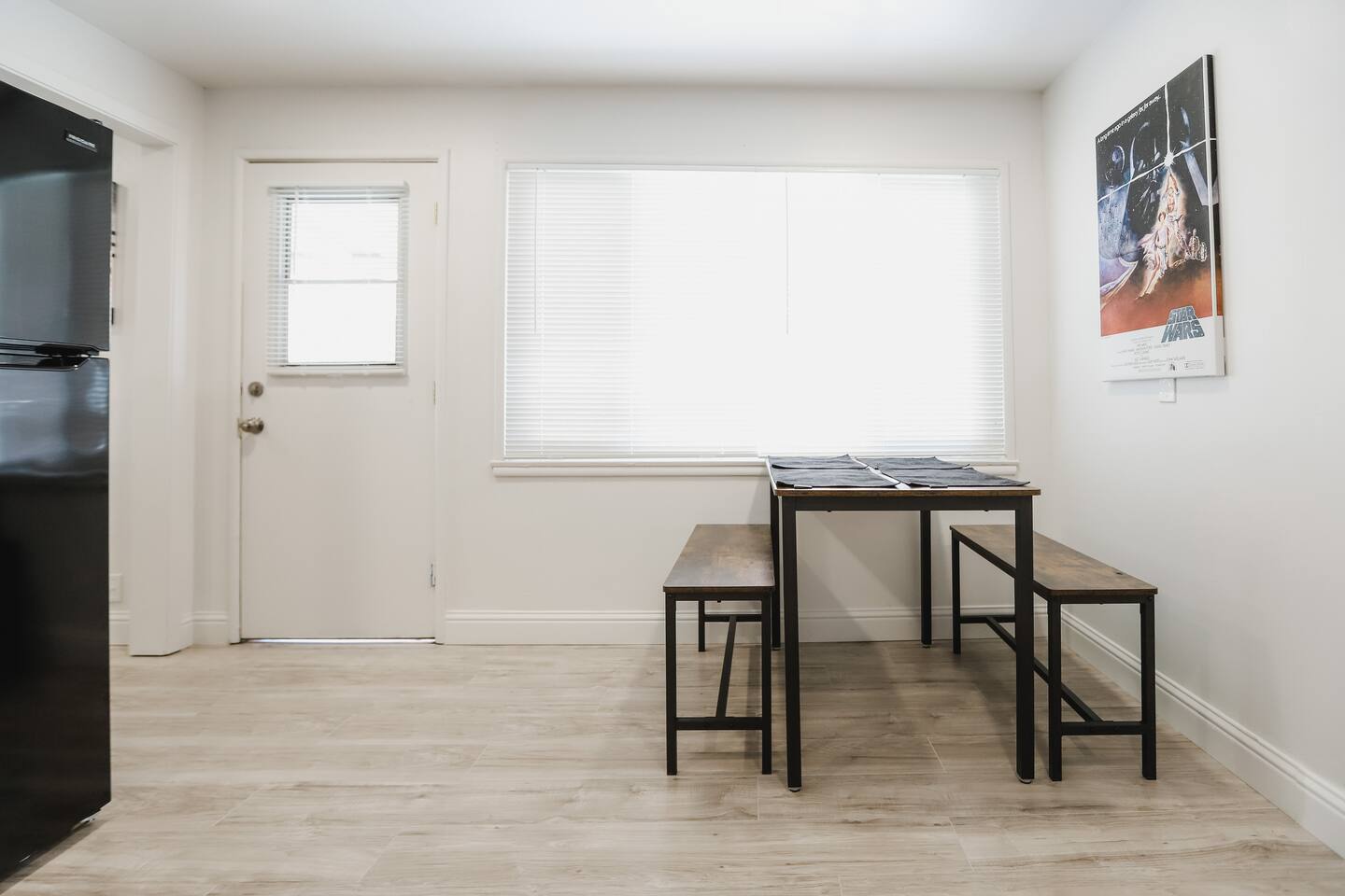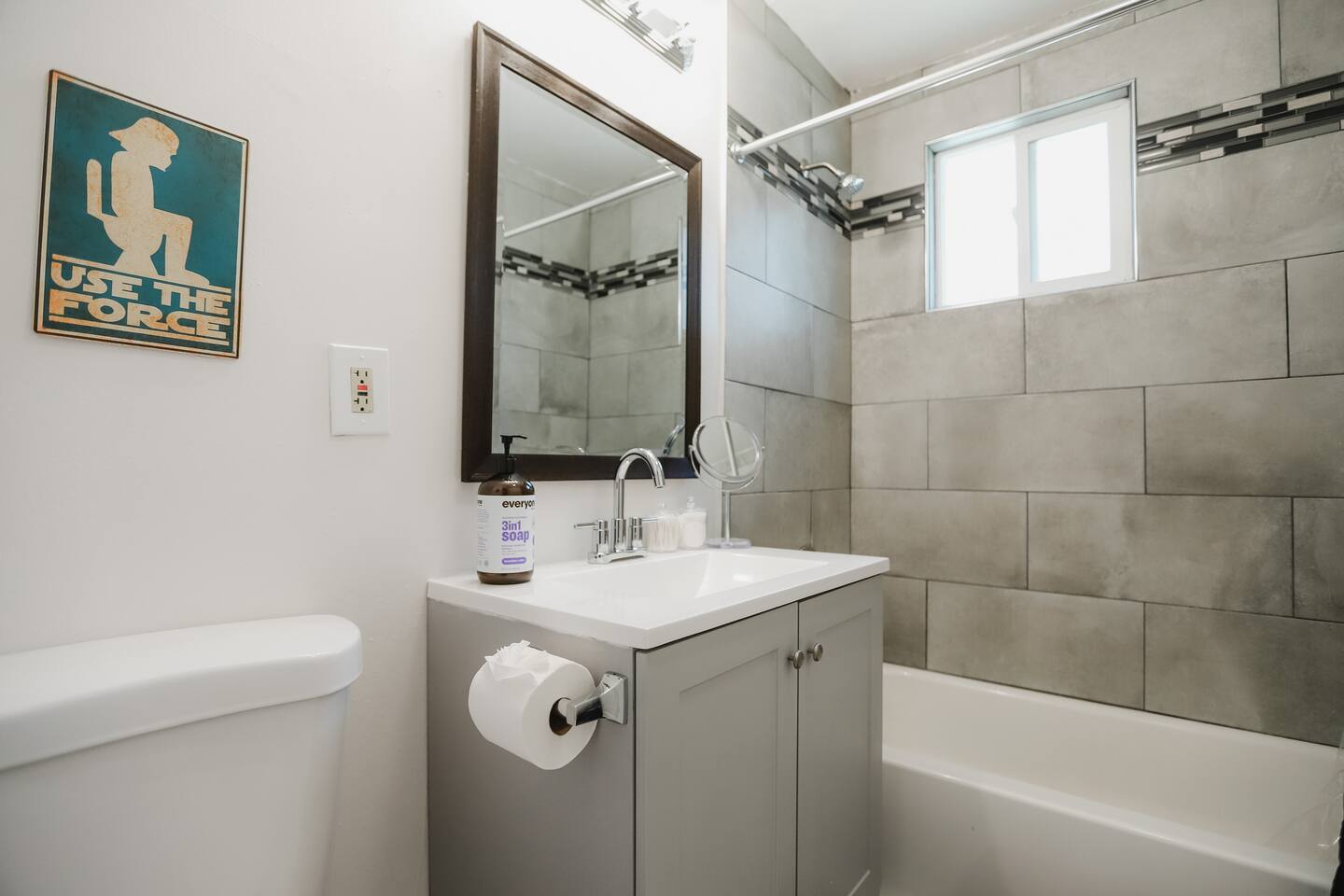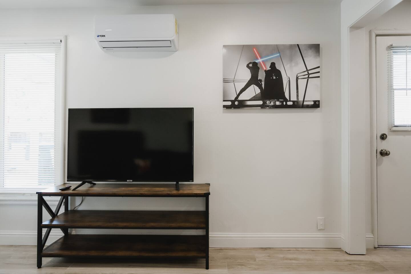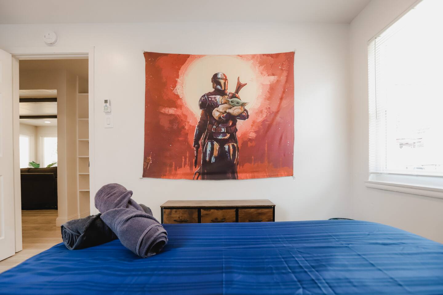 Our modern, updated space has all the comforts of home while you are away. This 2x1 is decked out with Starwars - themed decor throughout... May the force be with you! *Important: Though our smart TVs have streaming apps installed (Netflix, Disney+, Amazon Prime), guests would need to log in with their own credentials. Please remember to logout of the apps at checkout. Book with us and get: - Professionally cleaned home - Virtual Concierge 24/7