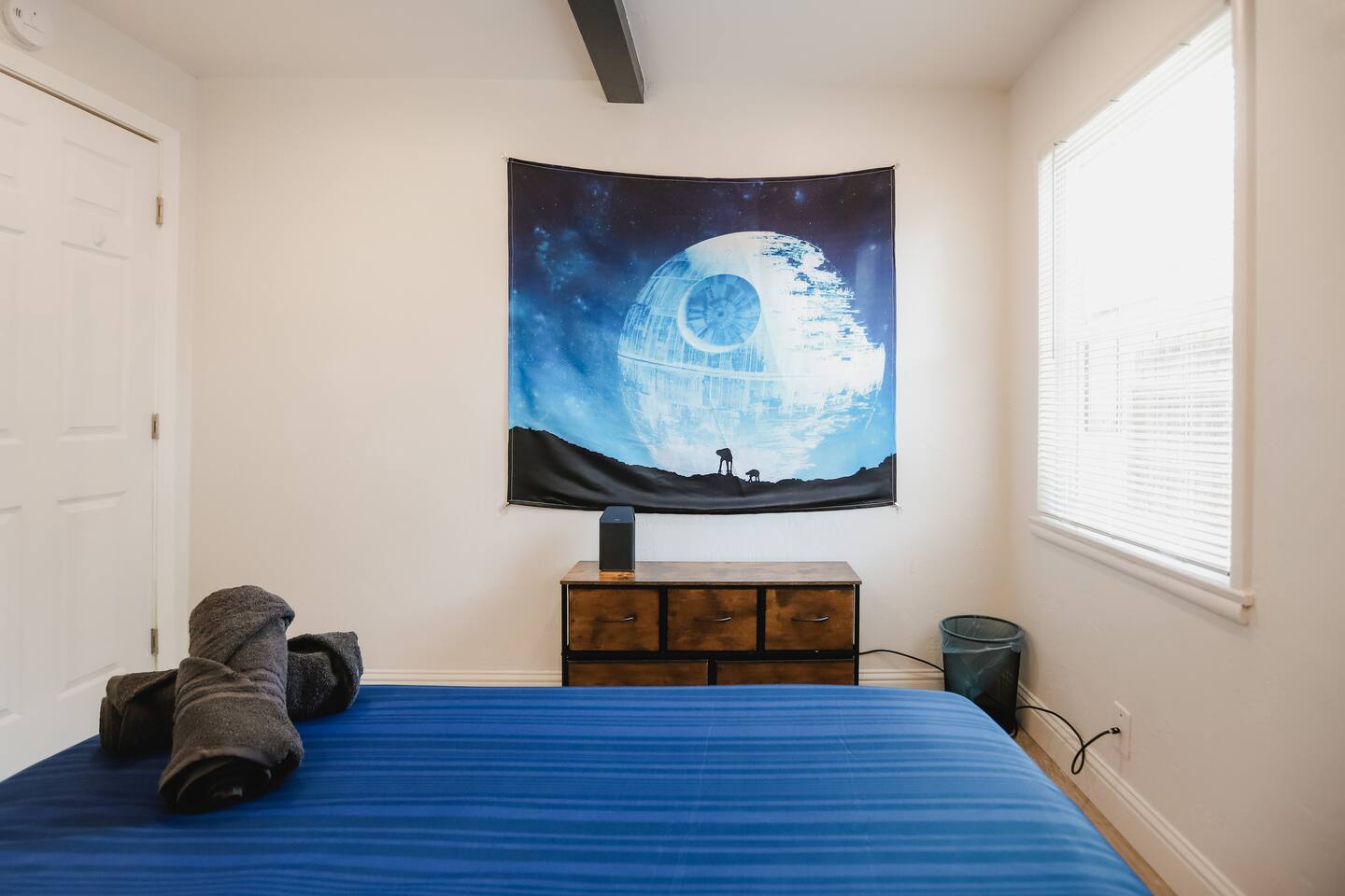 Come enjoy this Star Wars themed two bedroom unit in Sacramento.. From X wing to AT-AT walker to Death Star and Baby Yoda with the Mandalorian and light sabers.. This is a fun place to hang out while checking out other attractions of Sacramento :) - Free street parking and laundry - Stainless steel appliances. - Fully stocked kitchen, Keurig coffee. - Smart TV with Netflix Prime video and Disney.+